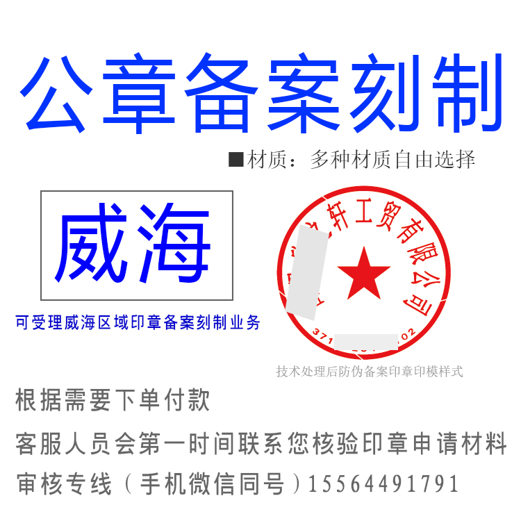威海公章备案刻章预约办-公章财务专用章合同专用章法人章中英文公章等